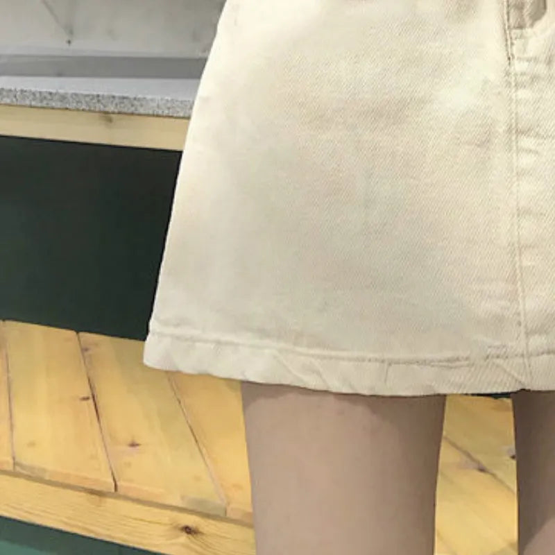 đ Womenâs A-Line Denim Skirt â Mini, High-Waisted with Buttons and Pockets